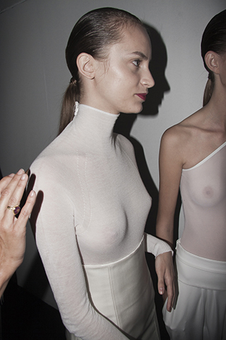 Photo reportage realized within the setting of the 080 Barcelona Fashion Festival. The photographies were taken on the backstage and they attempt to re-site the auratic ideal of the supermodel. They capture the models with natural expressions in times of rest or transition, or when posing for other photographers. It deals with portraits in which the glamorous reference proper of the idyllic universe of the fashion industry is left out of context.